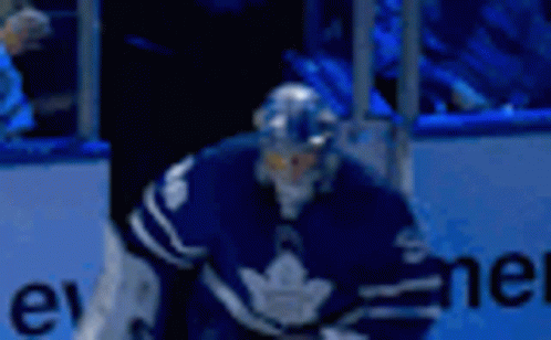 Toronto Maple Leafs goalie Jack Campbell waves to the crowd while on the ice.