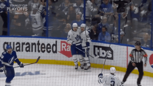Noel Acciari of the Toronto Maple Leafs on the ice during a Stanley Cup Playoffs hockey game.