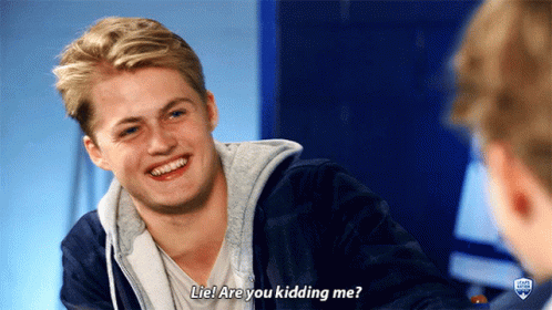 William Nylander of the Toronto Maple Leafs smiles and reacts with "Lie! Are you kidding me?"