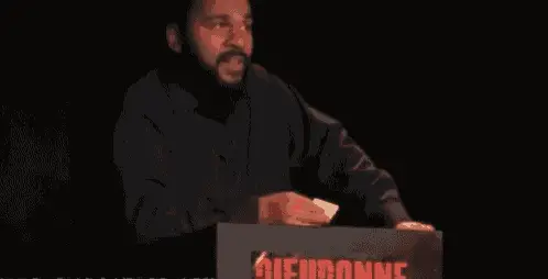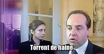 Man speaking about 'Torrent de haine', 'antisémite', 'raciste', 'insupportable' with a woman in background.