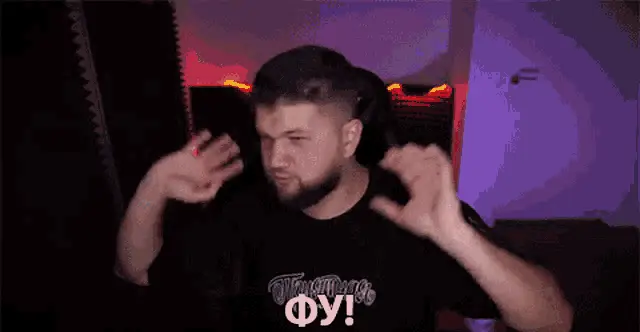 Демидов, wearing glasses and a black jacket, reacts with a disgusted expression, holding his throat as if feeling nauseous.