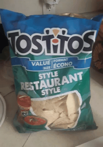 A value size bag of Tostitos Restaurant Style tortilla chips, partially open and ready to enjoy.