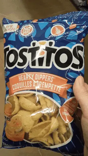 Two bags of Tostitos Scoops tortilla chips are displayed, ready for dipping.