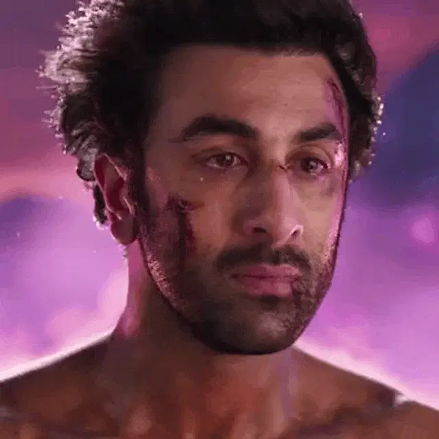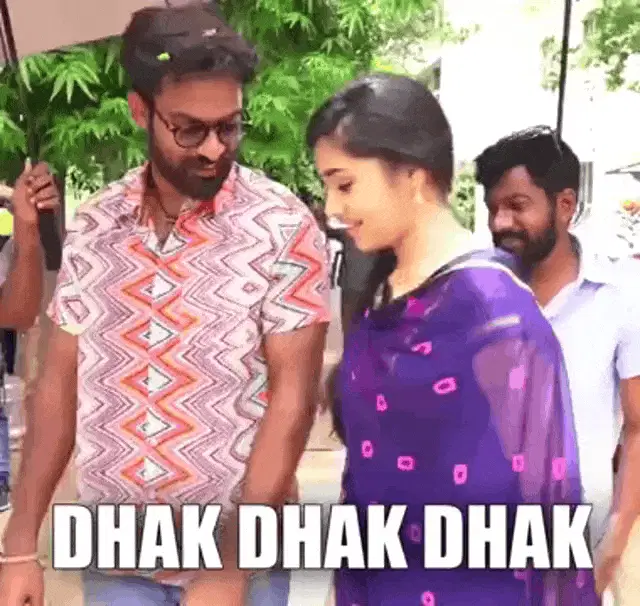 Maruv on a red couch, intimately touched on the neck by another woman with tattooed hands.