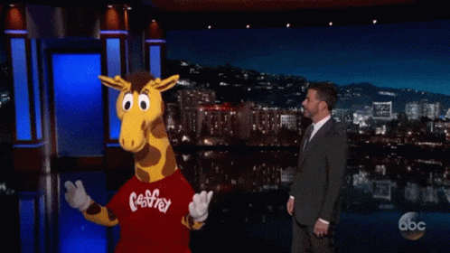 Geoffrey the Giraffe appears on Jimmy Kimmel Live, looking sad and emotional.
