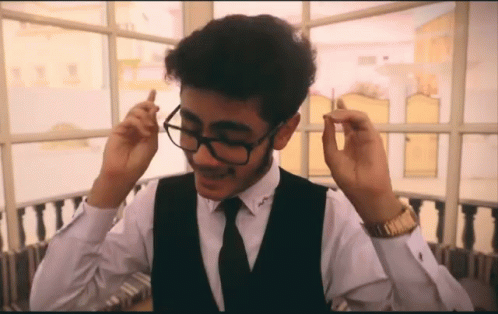 Rayan Bakeel adjusts his headphones, wearing a white shirt, black vest, and tie, ready to start.