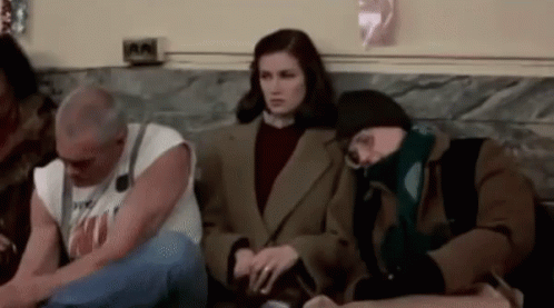 Kristin Darnell reacts to a foul smell while sitting with others in a scene from Trading Places.
