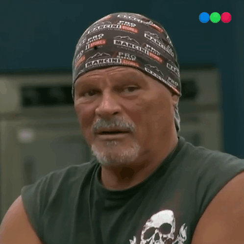 Alfa from Gran Hermano tells viewers to 'Tranqui!' (Calm down!) while wearing a bandana.