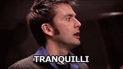 A man gestures while saying 'Tranquilli,' emphasizing calm and reassurance.