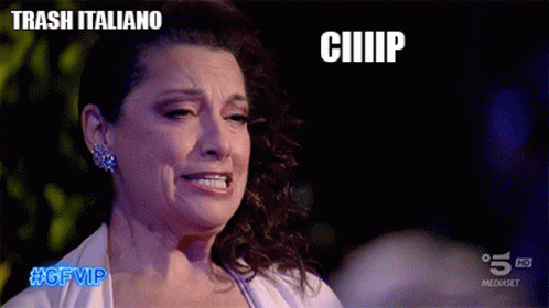 A woman crying with 'Trash Italiano' and 'Cip' text, from the Italian reality show Grande Fratello Vip.