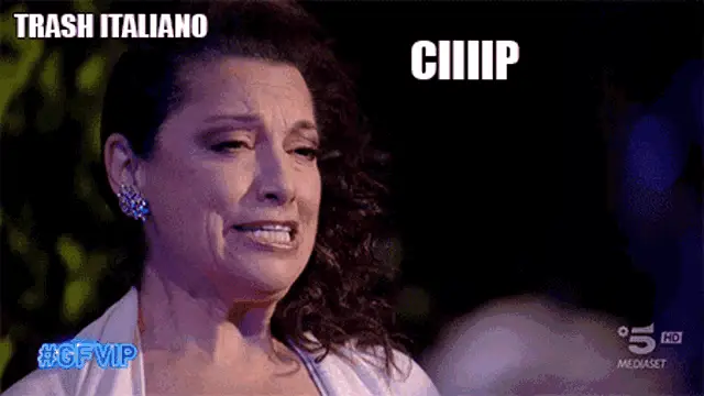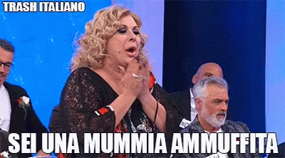 A woman screams 'You are a moldy mummy' on Trash Italiano, gesturing emphatically.