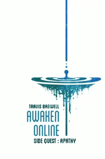 A poster for Travis Bagwell's 'Awaken Online: Side Quest Apathy', featuring a blue and white water droplet design.