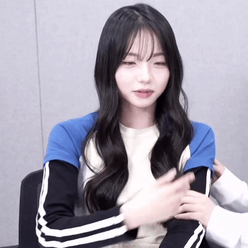 a girl with long hair is wearing a blue and white sweater