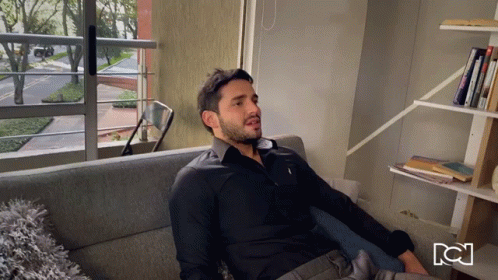 Eduardo (Sebastian Ballen) looks sad and exhausted while sitting on a couch, reflecting a moment of weariness.