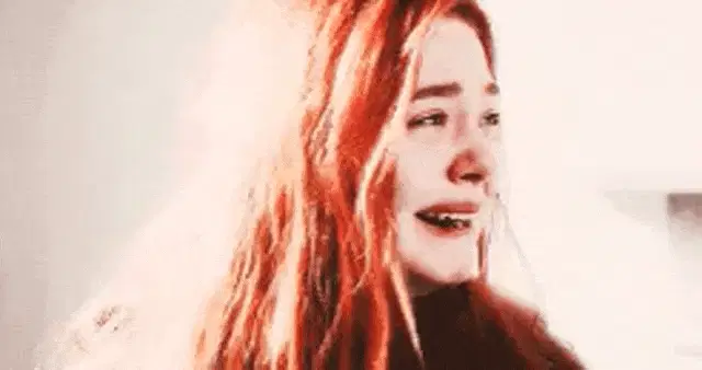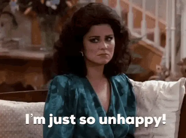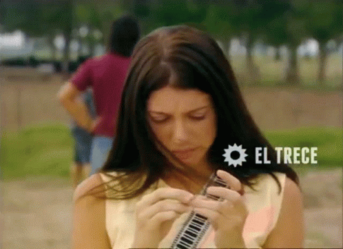 A woman from the Argentine telenovela 'Son Amores' appears sad and contemplative, fiddling with her hands.