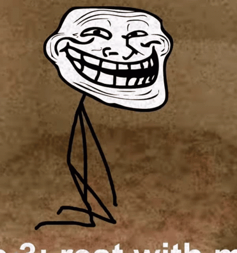 Trollface meme drawing with text 'i root with m' on a textured background.