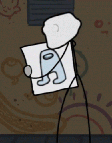 A stick figure, in the style of Trollge Trollface, reacts to an Among Us drawing by tearing it up.