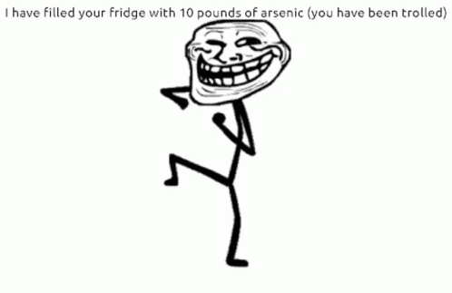 A classic trollface meme with text about filling a fridge with arsenic, embodying a 'trolling skill issue'.