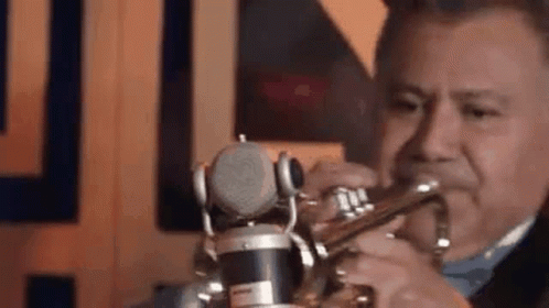 Amii performs live, playing the trumpet while people dance to the vibrant music in a lively setting.