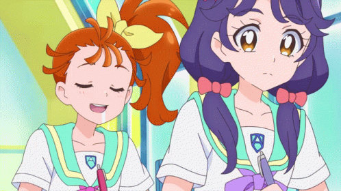 Natsuumi Manatsu reacts with frustration while Suzumura Sango watches in Tropical Rouge Precure.