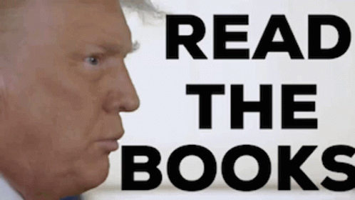 Donald Trump's profile with the prominent text 'READ THE BOOKS' displayed next to him.