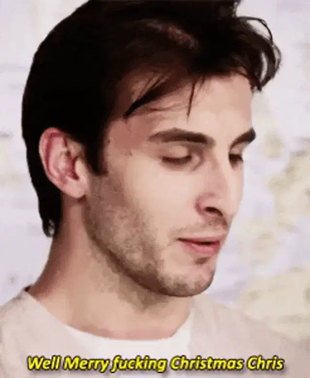 Matt Welty, wearing a striped hat, discusses trying to cause trouble, with a red shoe visible in the background.