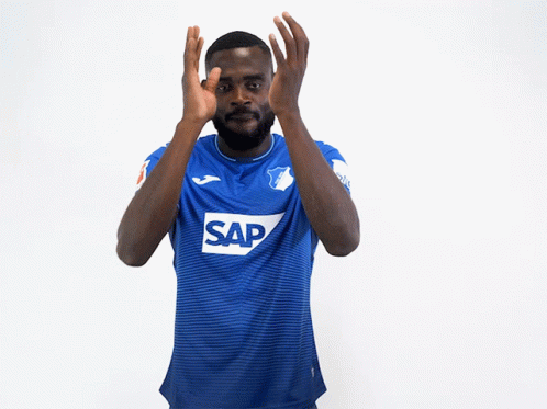 Kasim Adams claps in his blue TSG Hoffenheim jersey, showing appreciation.