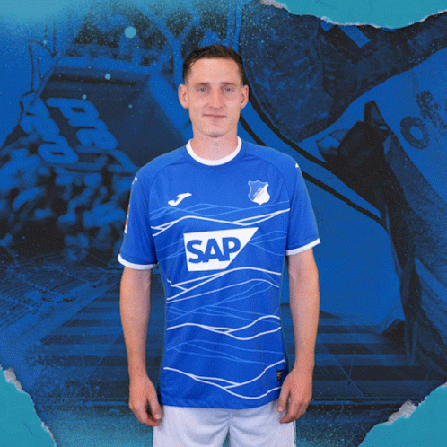 Sebastian Rudy of TSG Hoffenheim gives a double thumbs up in his blue team jersey.