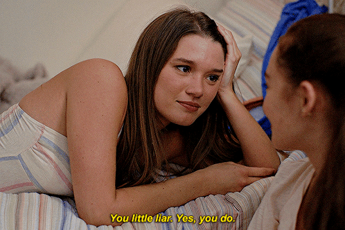 Rain Spencer and Taylor Jewel from 'The Summer I Turned Pretty' share a moment, with one saying 'You little liar. Yes, you do.'