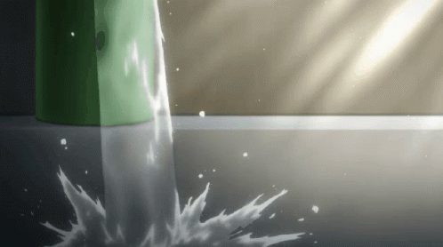 A character from the Tsugumomo anime washes their face in a bathroom, using a towel.