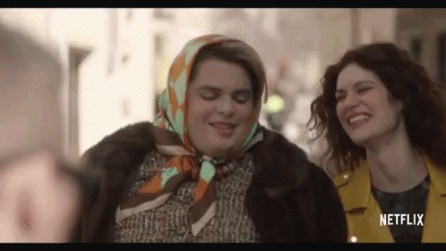 Paquita Salas and Lidia San Jose laughing, with Paquita saying 'You join my side and there will be success.'