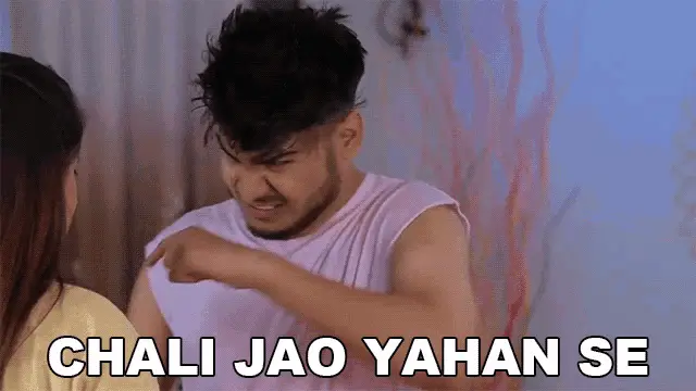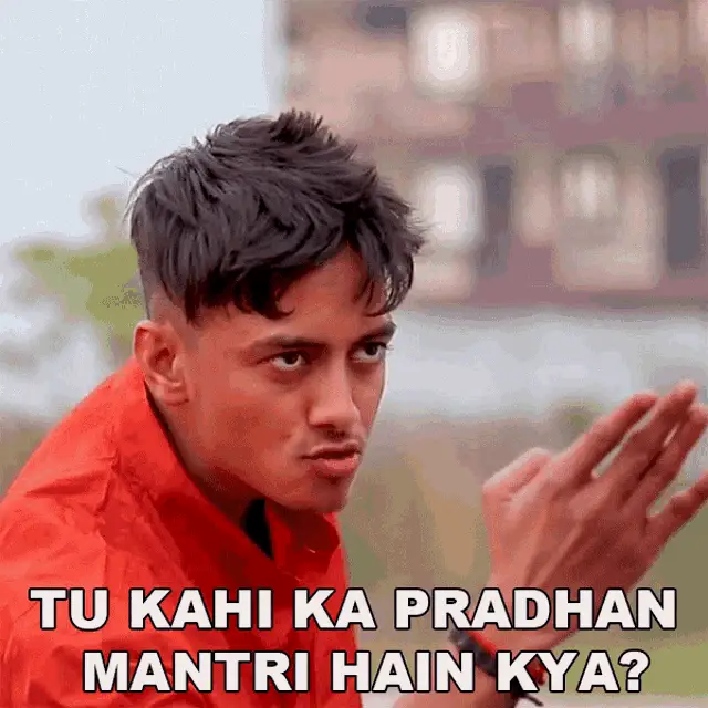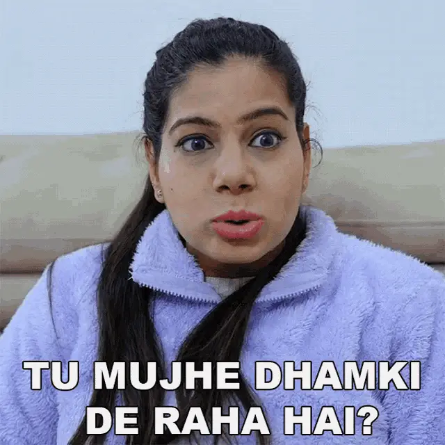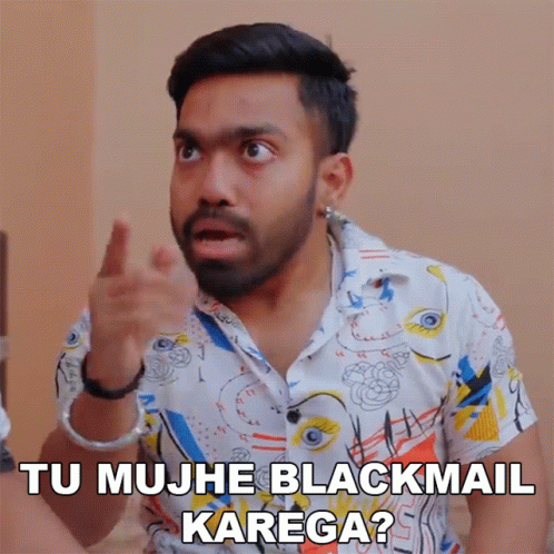 Vibhu Varshney asks 'Tu Mujhe Blackmail Karega?' with an intense expression, wearing a colorful shirt.