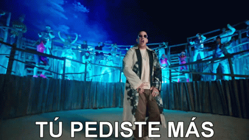 Daddy Yankee performs 'Tu Pediste Mas' in a vibrant stage setting, surrounded by a crowd, delivering a powerful show.