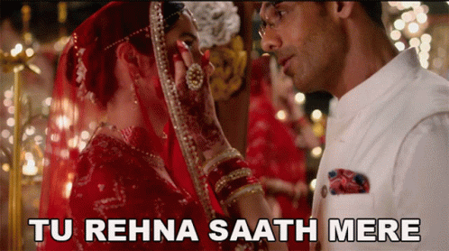 John Abraham and Divya Khosla Kumar in a romantic wedding scene from 'Satyameva Jayate 2' with 'Tu Rehna Saath Mere' lyrics.