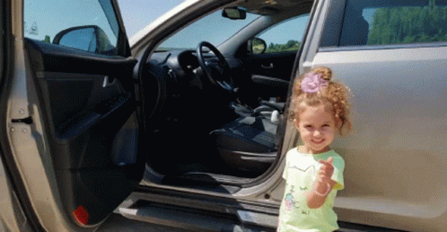 МиланаStar points to the car, inviting viewers inside with a smile.