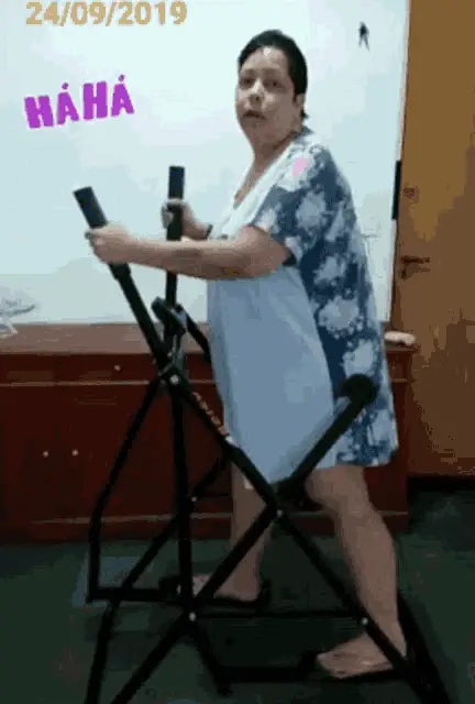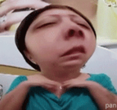 Tulla Luana makes a series of exaggerated and funny faces with a distorted face filter, wearing a blue shirt.