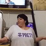Tulla Luana dancing energetically in a white t-shirt with '#PRETTY' text.