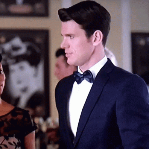 Kevin McGarry in an elegant tuxedo and bow tie stands at a formal event.