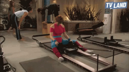 Reba McEntire struggles with a Pilates workout on a reformer machine, showcasing a humorous fail in a TV Land clip.