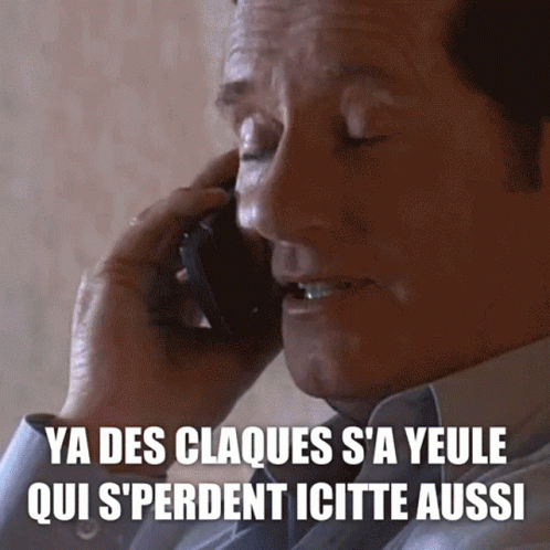 Marc Messier on the phone, with the Quebecois caption 'Ya des claques s'a yeule qui s'perdent icitte aussi'.