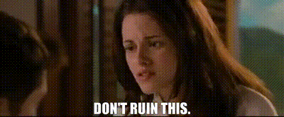 Bella Swan (Kristen Stewart) from Twilight: Breaking Dawn Part 1, with an emotional plea: 'Don't ruin this.'