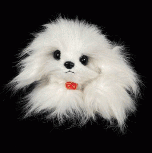 Ty 1986 Schnapps, a fluffy white puppy plush toy, moves its head and paws.