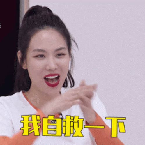 Vương Phi from Ty Ty Dap Gio Re Song makes a funny gesture with the caption 'I'll save myself'.