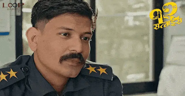 Hari Bansha smiling during a news flash segment, featuring 'Tyantaramyantan' and news from Rajbiraj, Nepal.