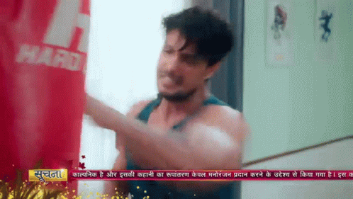 Fateh Singh Virk (Ankit Gupta) shows intense boxing skills, hitting a red punching bag during his workout.