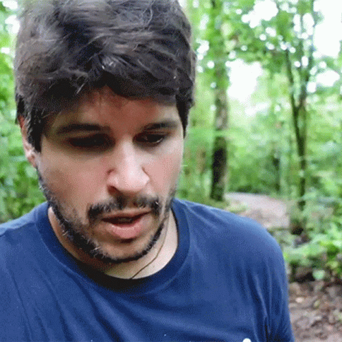 Henrique Fonseca, a man with a beard, expresses relief saying 'Ufa!' in a forest setting.