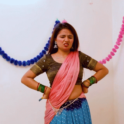 Yogita Bachani expresses 'Uff' while holding a dandiya stick, trying to remember something.