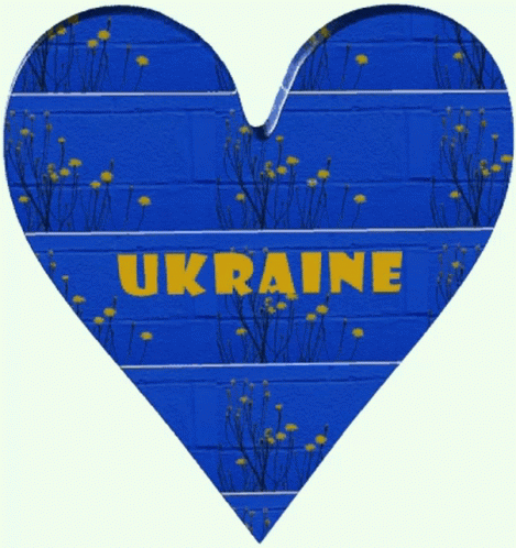 A heart-shaped image featuring the word 'UKRAIN' in blue and yellow, symbolizing support for Ukraine.