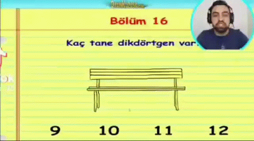 Ümidi reacts to a brain teaser: 'How many rectangles are there?' featuring a bench drawing and answer choices.