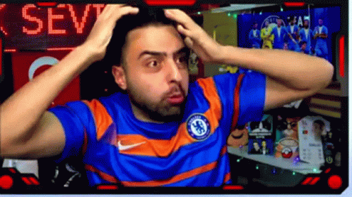 ümidi reacts intensely while wearing a Chelsea jersey, likely to a Ronaldo-related event.